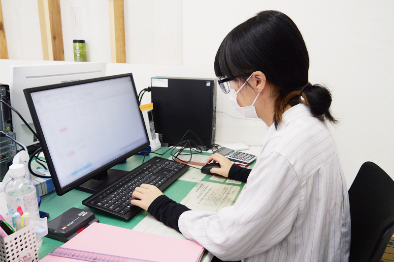 書類作成や電話・来客対応、経理補助や現場のスタッフのサポートなど、日々の業務を通じてスムーズな施工とお客様対応を支えています。